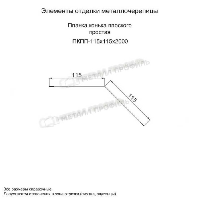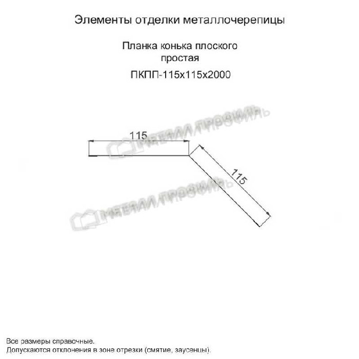 Планка конька плоского простая 115х115х2000 (ПЭ-01-1018-0.45) Показать информацию