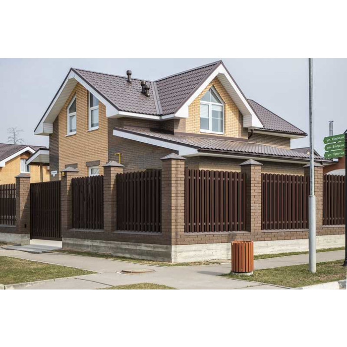 Штакетник Прямоугольный фигурный Grand Line 0,45 Полиэстер RAL 8017 Шоколад Показать информацию